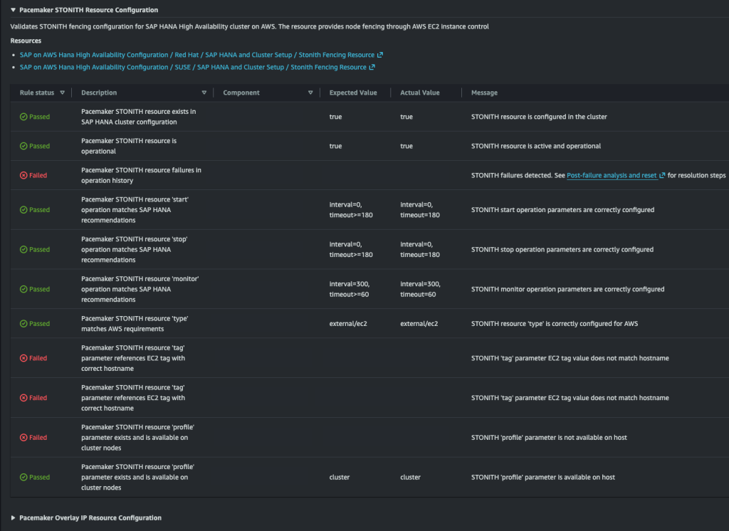 As mentioned earlier, the configuration is examined under three main categories. Below, I am sharing an example result from the analysis related to the Pacemaker configuration: