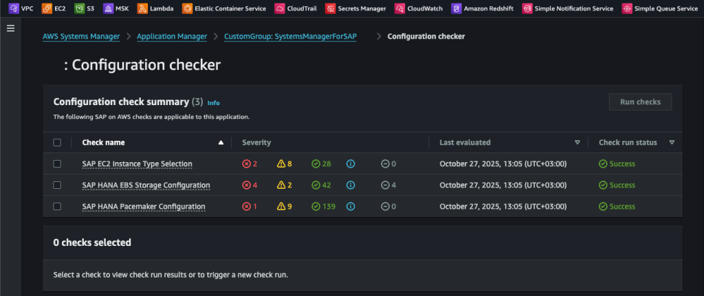 In this article, I will discuss the new Systems Manager feature announced by AWS in early September, which verifies how well SAP configurations running on AWS comply with best practices, as well as the details of this feature. This new capability helps you compare your SAP HANA configurations against the AWS Well-Architected Framework (SAP Lens) and official AWS for SAP documentation. It automatically checks EC2 instance types, EBS storage setup, and Pacemaker HA configurations to ensure compliance with best practices.