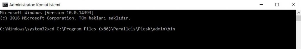 1. Command Prompt’u Yönetici Olarak Çalıştırıp açın ve cd “%plesk_bin%” yazın.