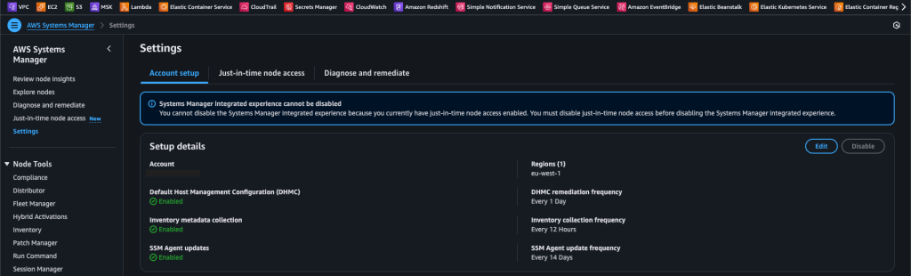 For those wondering, DHMC (Default Host Management Configuration) is a mechanism that ensures the necessary settings for Systems Manager are automatically applied to new EC2 instances or managed servers. Its main purpose is to make EC2 instances or on-premises servers ready to connect to Systems Manager without manual intervention. With this configuration: