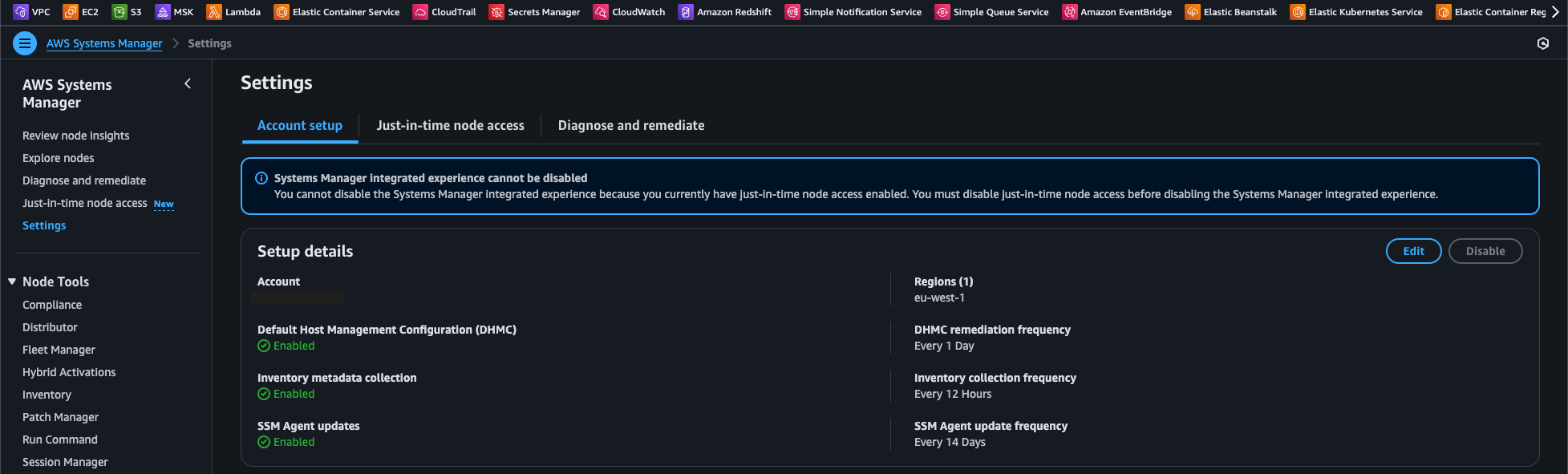 When you go to Just-in-time node access in Systems Manager and you haven’t used it before, you will be greeted with the following screen: