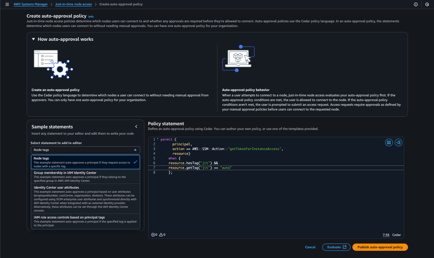 On April 29, 2025, AWS announced the JITNA (Just-in-time node access) feature to meet this need. With this feature, you can use it not only on your servers in AWS but also on your on-premises servers or servers in other cloud providers. The only requirement is that the AWS SSM Agent must be installed on the relevant servers, and the corresponding IAM role or IAM user (if outside AWS) must be defined.