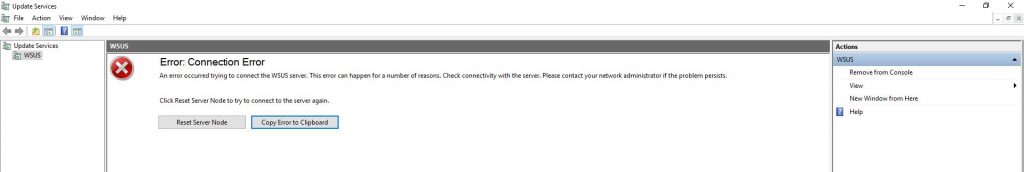 WSUS Console ekranında eğer ekteki hatayla karşılaşırsanız ilk bakmanız gereken yer, IIS’te WSUS’un Application Pool’un çalışıp çalışmadığıdır.